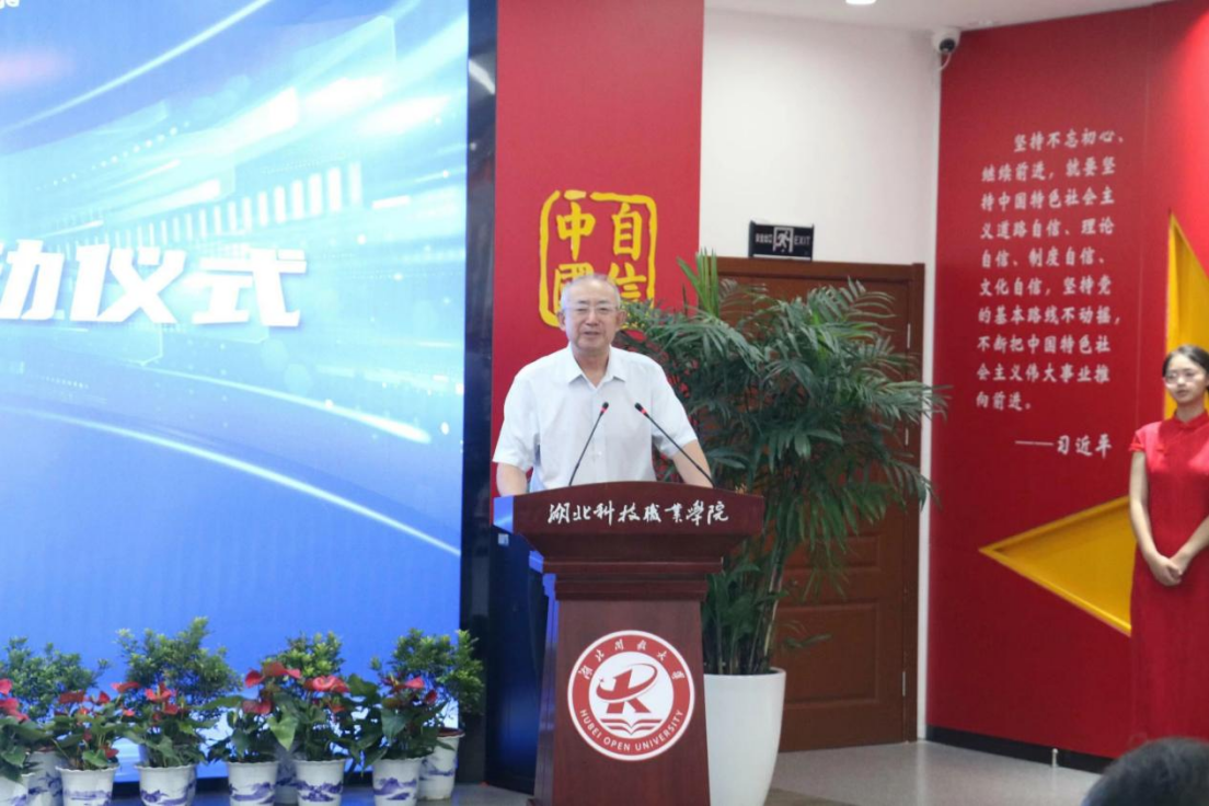 启动仪式现场,刘义代表学校致欢迎词,他介绍了近年来湖北科技职业学院的发展历程和建设方面取得的丰硕成果,并对产业学院的发展提出了进一步的希望和要求。