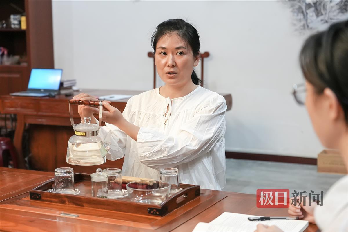 “将‘茶’字分解,便是人在草木间”“茶具也有对应的含义,比如我们泡茶会用到盖碗和公道杯,这就意味着在一个茶桌上喝茶的人都是平等的”……陈蔚的课堂,不仅教授茶艺,还在传授人生哲理。
