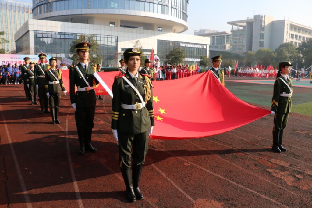 伴随着铿锵旋律,国旗方阵、校旗方阵、各学院运动员代表队以及教职工运动员代表队依次入场。他们精神饱满、意气风发,喊着嘹亮的口号昂首阔步走过主席台,展现了师生的蓬勃朝气。入场式结束后,所有人员面向旗杆方向,进行了庄严的升国旗、奏国歌仪式。