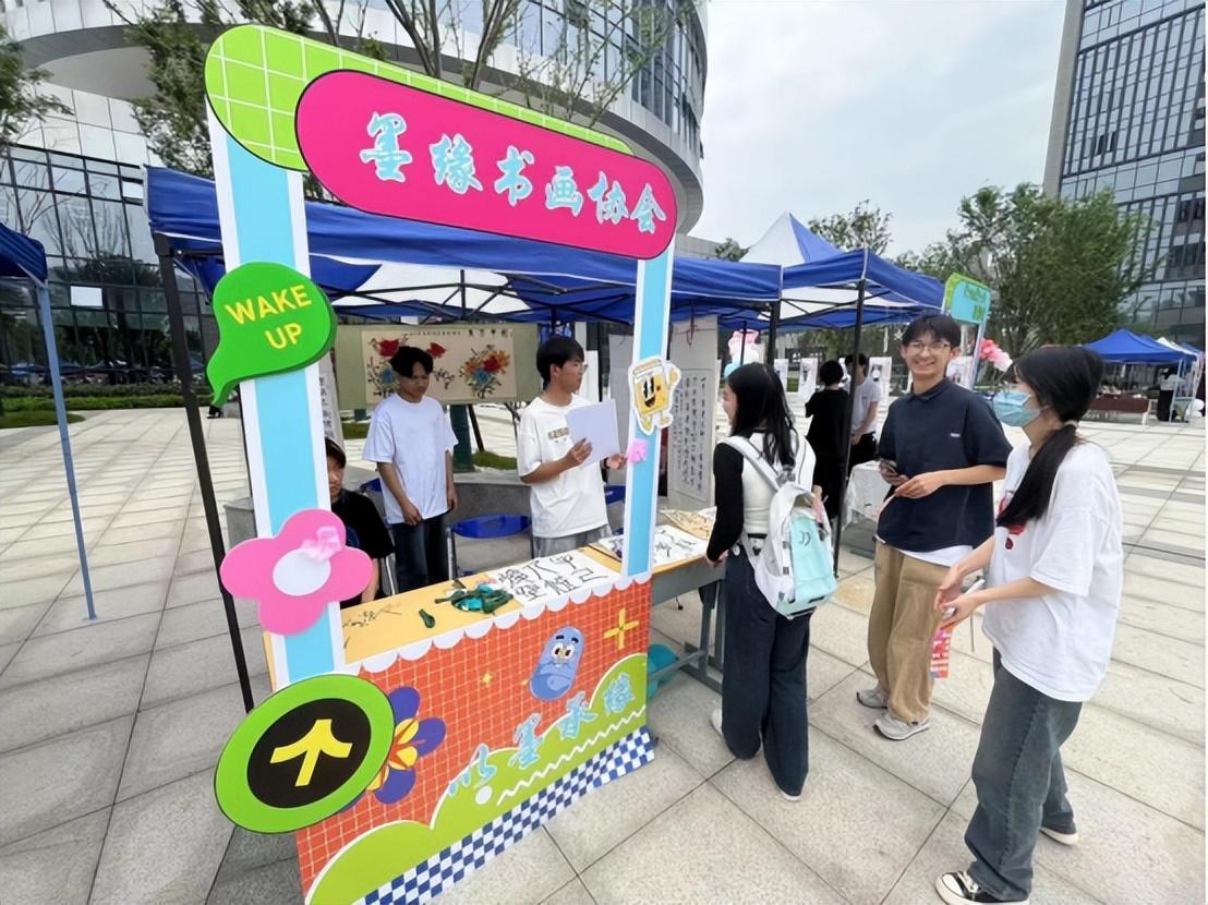 “同学,你看看这个字我写得怎么样?”“墨缘”书画协会的展位前人潮涌动,社团学生在现场分享软笔书法的练字心得与技巧,制作精美的书画书签,和同学们一起探寻书法的魅力。DIY协会推广的民俗瑰宝剪纸艺术、读者协会的文学经典著作品读、“沁秋”茶酒社的茶艺展示活动、“易安”汉服社的国风走秀都以不同的形式展示出浓郁的传统文化氛围,越来越多的中华优秀传统文化走进校园,成为备受同学追捧、喜爱的“宝藏”。