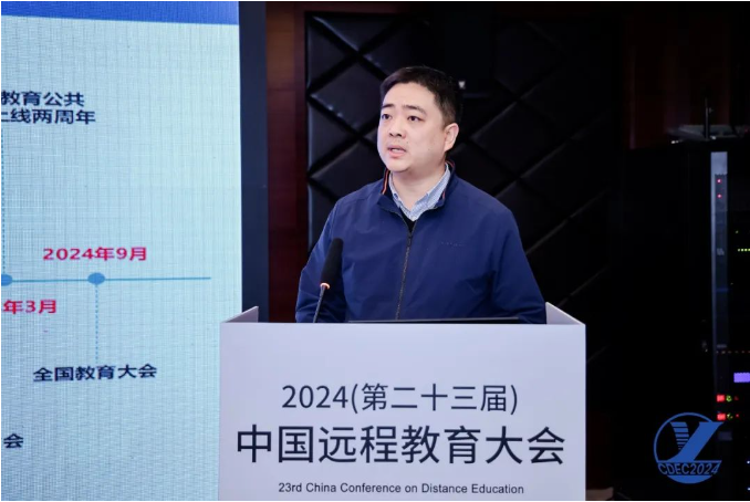 教育部教育管理信息中心开发部负责人任怀德代替教育部教育管理信息中心公共平台处处长张鹏作《推进职业院校智慧校园建设 提升院校数字化治理水平》报告。他阐述了当前教育数字化战略行动和加快推进现代职业教育体系建设改革的重点任务。任怀德表示,教育体系创新,关键在于“化”;职业教育数字化转型有着清晰的演进路径。同时,他分享了教育管理信息中心承担职业院校智慧校园建设支撑保障任务中,“职业院校数字基座”建设和研制印发数据对接标准规范的基本情况和成效。这些工作的开展,为职业院校智慧校园数据治理体系提供了参考依据。