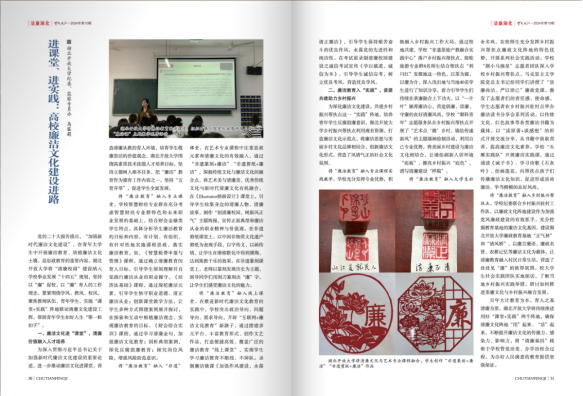 省纪委监委刊物《楚天风纪》2024年第10期以《进课堂、进实践:高校廉洁文化建设进路》为题,介绍学校党委开展清廉学校建设工作经验。