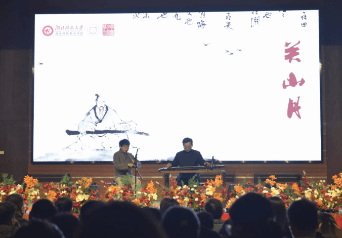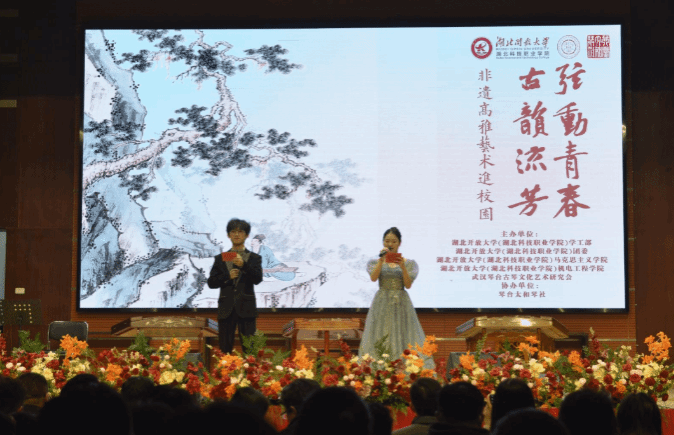 12月11日晚,“弦动青春·古韵流芳——非遗高雅艺术进校园”专场展演在湖北科技职业学院关山校区报告厅精彩上演。本次活动由学工部(处)、团委、马克思主义学院、机电工程学院联合武汉琴台古琴文化艺术研究会共同主办,特邀两位区级非遗传承人现场演绎。