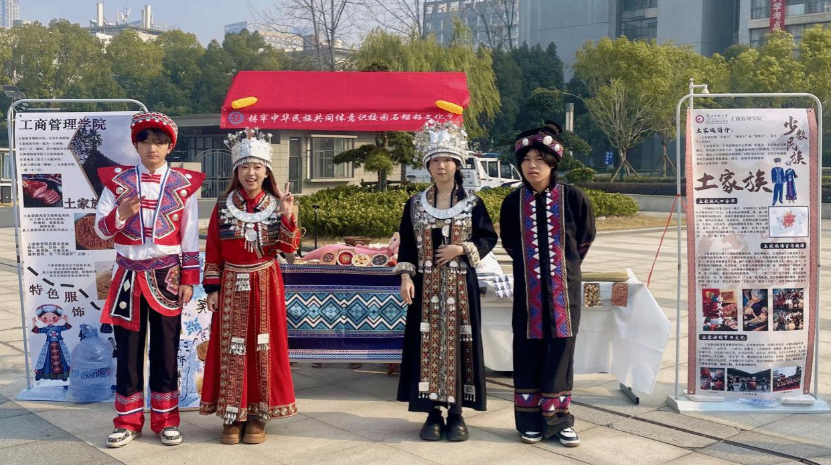 机电工程学院的侗族文化展区,身着侗族服饰的学生现场演绎侗族舞蹈,并为师生们奉上地道的侗族打油茶。