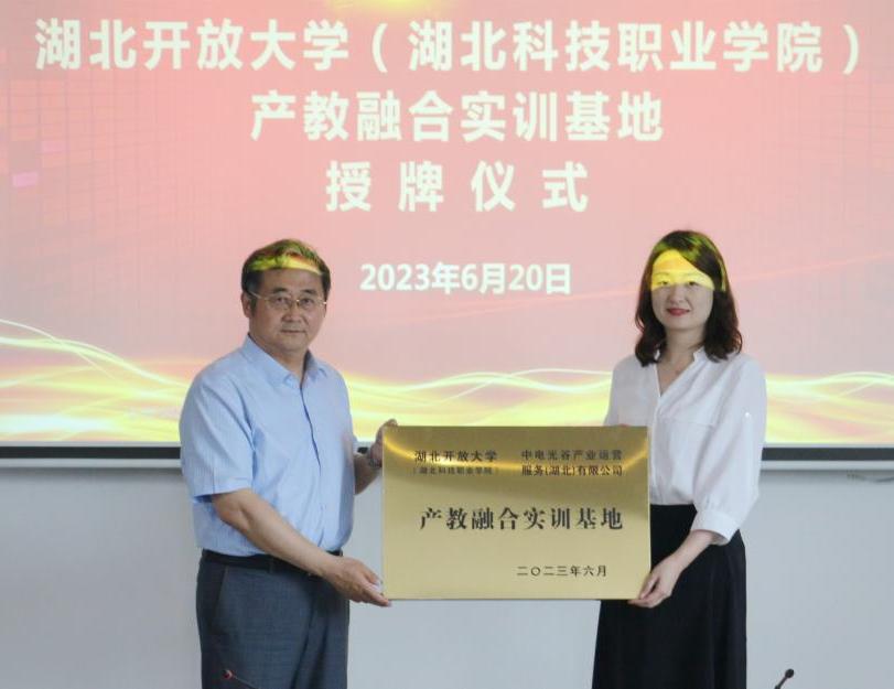 本网讯(通讯员 农珑/文 李贺刚/图)为贯彻党的二十大关于产教融合、科教融汇的决策部署,6月20日上午,学校与中电光谷产业运营服务(湖北)有限公司举行产教融合战略合作签约仪式。