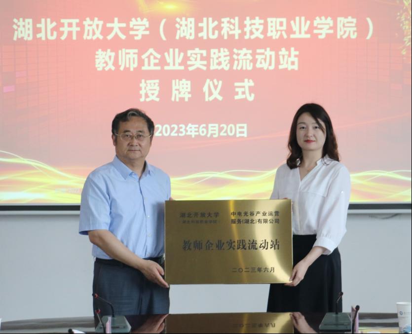 党委副书记、校长钟毓宁,党委常委、副校长宋移安,相关职能部门、二级教学单位主要负责人,中电光谷集团助理总裁贾子华、运营公司副总经理刘璐等出席并见证签约授牌。仪式由职院教务处、校企合作处处长夏学文主持。