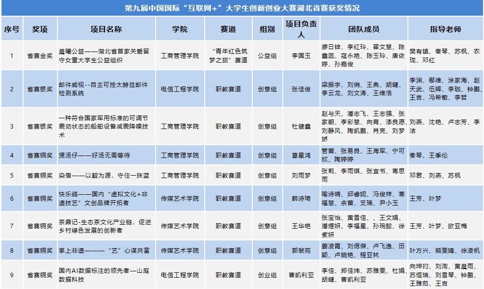 本网讯(通讯员 宋晓露/文 樊有镇 刘燕 李渊/图)7月30日晚,为期两天的第九届中国国际“互联网+”大学生创新创业大赛湖北省复赛现场赛在湖北工业大学落幕,湖北科技职业学院参赛团队再创佳绩获1金2银6铜,其中,“晨曦公益——湖北首家关爱留守女童大学生公益组织”与本科院校同台竞技获“青年红色筑梦之旅”赛道金奖,实现学校历史性突破,“邮件威视——自主可控太赫兹邮件检测系统”“一种符合国家军用标准的可调节震动状态的船舶设备减震降噪技术 ”获职教赛道银奖,“快乐鸽——国内‘虚拟文化+非遗技艺’文创品牌开拓者”等6个项目获职教赛道铜奖。