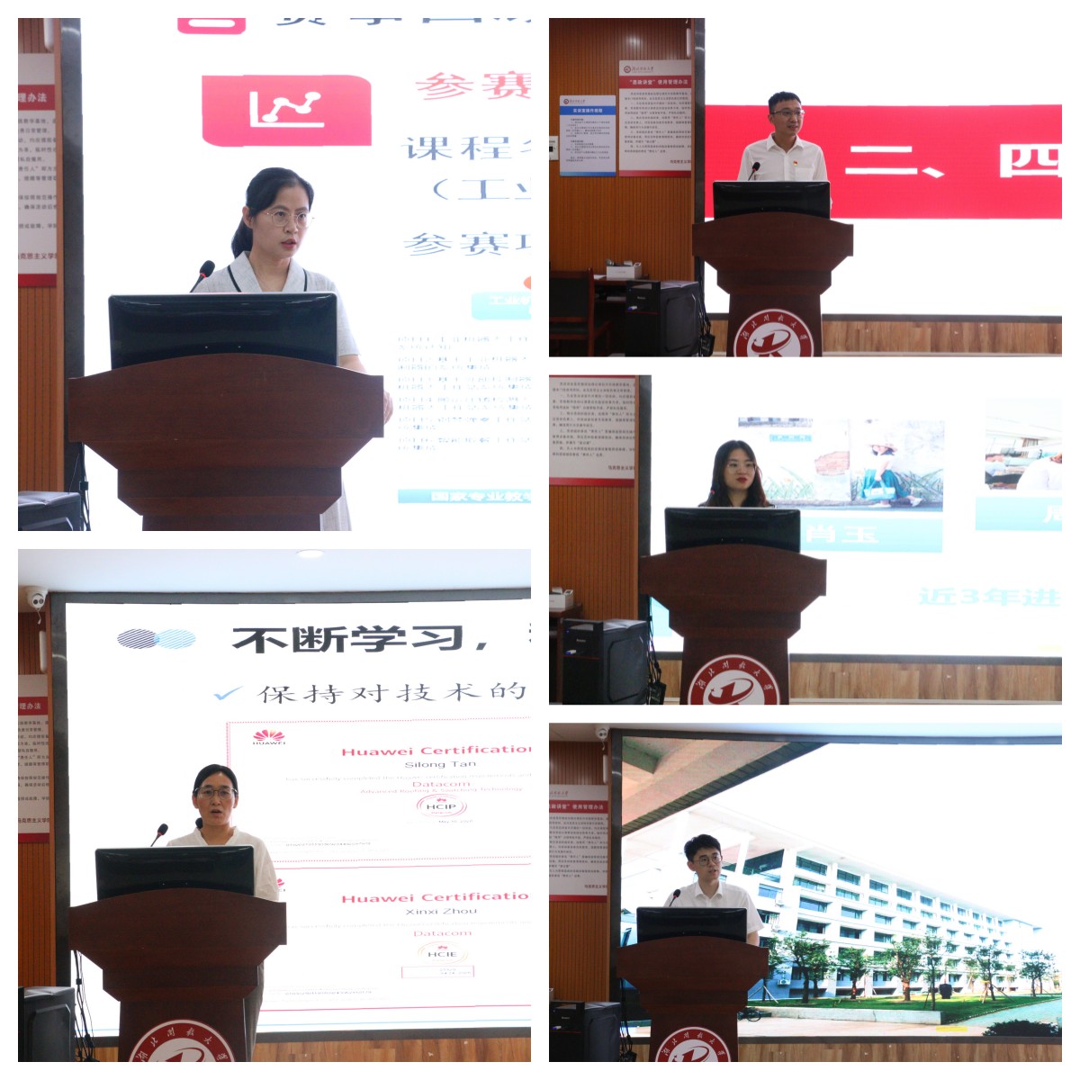 机电工程学院熊小艳、电信工程学院尹淑玲、软件工程学院周燕、工商管理学院樊有镇结合各自在教书育人、立德树人方面的工作经验和取得的突出成绩作了交流发言;导学中心徐辅中作为2023 年新进校教师代表作了发言。