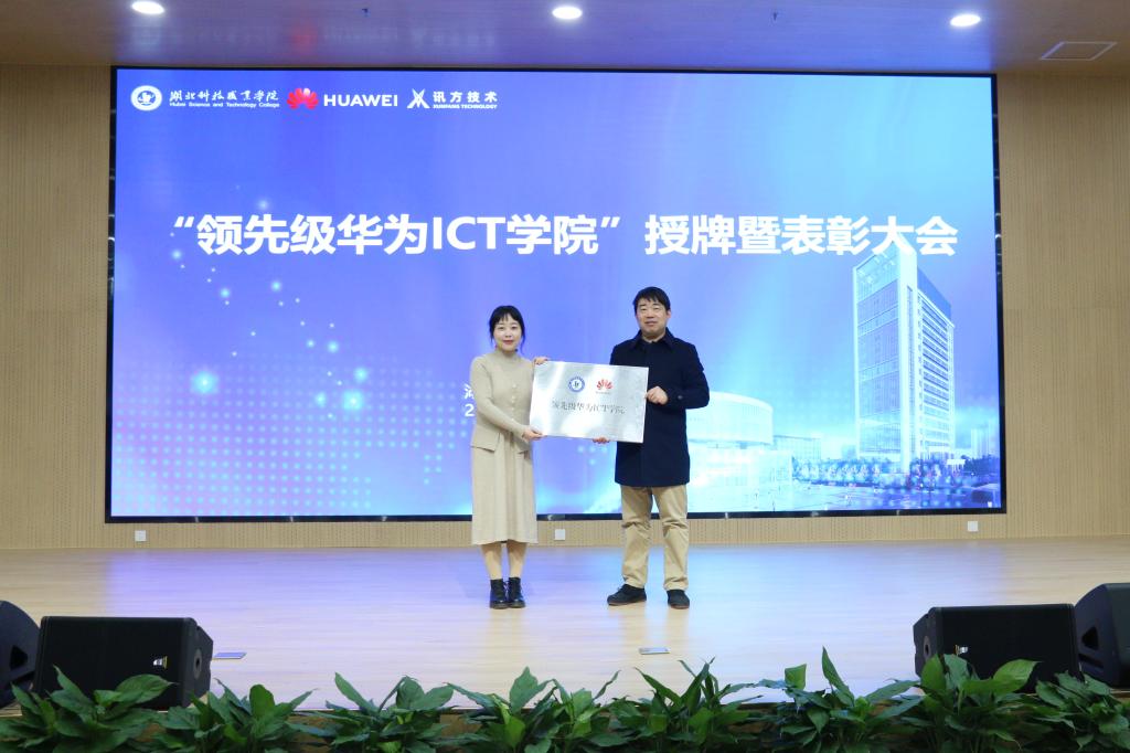 于芳向湖北科技职业学院授予“领先级华为ICT学院”牌匾