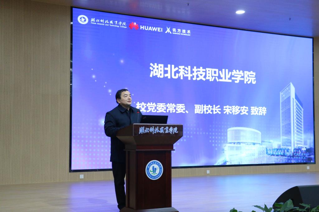 宋移安指出,湖北科技职业学院始终坚持立德树人根本任务,深入贯彻落实教育综合改革,持续推进职业教育提质培优行动计划,加强内涵建设,在办学实力、合作办学、技能竞赛等方面均取得傲人成绩,成立湖北省首家鲲鹏产业学院,对接华为生态的“1+1+N”人才培养模式的探索取得显著成效。他指出,学校与华为的强强联合,必将培养出更多具有全球视野、家国情怀、真才实学的技术技能型人才。