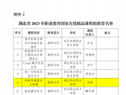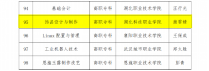 本网讯(通讯员 卢义平/文 詹乐/图)近日,湖北省教育厅公示了2023年职业教育省级在线精品课程拟认定名单和国家在线精品课程拟推荐名单,我校申报的《传感器应用技术》《中国传统文化》《商务数据分析与应用》《饰品设计与制作》4门课程获评2023年湖北省职业教育在线精品课程。至此,我校已建有7门省级在线精品课程,课程建设数量与质量位居全省高职院校前列。《邮轮客舱服务与管理》《传感器应用技术》2门课程获推参评国家级在线精品课程,有望在国精课的申建中取得新的突破。