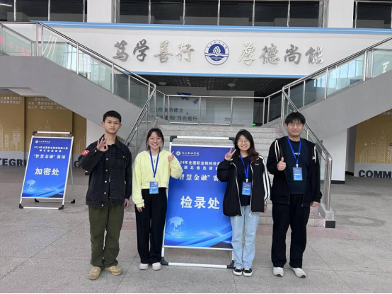 本网讯(通讯员 欧阳岚 文/图)3月28日至29日,2024年全国职业院校技能大赛湖北省选拔赛“智慧金融”赛项顺利举行。经过紧张激烈的角逐,我校参赛团队2022级经济贸易学院金融科技应用专业学生李采薇、许滢滢、胡胜强、黄炎林以第一名的成绩获得国赛参赛资格。