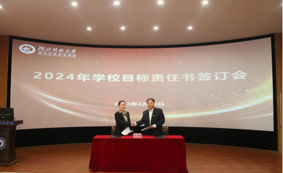 本网讯(通讯员 夏婷/文 刘捷/图)4月18日上午,学校召开2024年工作目标责任书签订会,会议由党委书记刘义主持,校长钟毓宁出席会议并讲话,全体校领导、副处级以上领导干部参会。