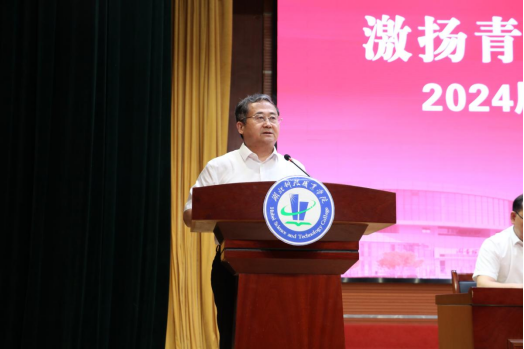 校长钟毓宁站在师者、长者的角度,以《以奋斗姿态激扬青春以挺膺担当启航未来》为主题发表了满怀深情的毕业寄语,为即将告别校园的同学们上了一堂充满家国情怀、深情厚意的思政大课。他向2024届全体毕业生致以最热烈的祝贺和最美好的祝愿,并对毕业生殷切嘱咐:一是厚植家国情怀,心怀“国之大者”。在未来的人生道路上,要将个人的理想追求融入党和国家事业之中,将自身的成长发展与中华民族伟大复兴紧密相连,在奉献祖国、服务人民的中国式现代化实践中奋勇前行。二是坚持知行合一,锤炼“业之能者”。要坚持知行合一,弘扬劳模精神和工匠精神,锤炼专业技能,努力成为堪当大任的高技能人才、能工巧匠、大国工匠。三是勇于逆风前行,善做“人生强者”。要以择业新观念打开就业新天地,在新时代新征程路上要能吃苦耐劳,经得住摸爬滚打,保持终身学习和思考的热情,始终做一个奋斗者、永不放弃者、人生强者。