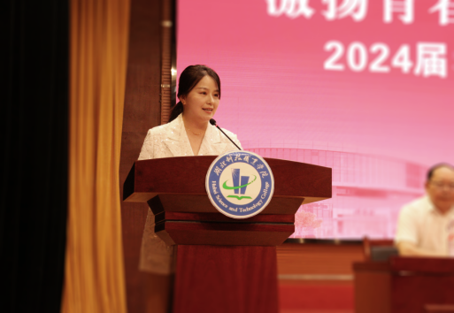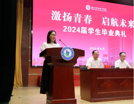 电信工程学院信息安全技术应用专业负责人尹淑玲作为教师代表发言,她对毕业生表达了真挚的祝福,希望毕业生带着“立德、树人、笃学、尚行”的校训精神出发,在广阔的社会舞台上拼搏逐梦,在新时代的浪潮中乘风破浪。