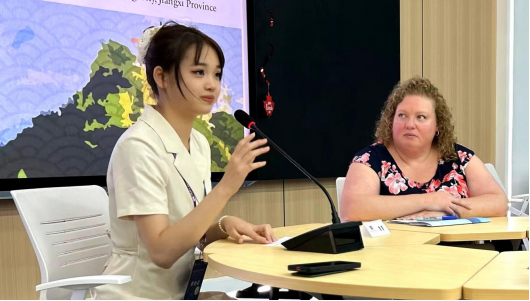 本网讯(通讯员 肖倩 李洋 沈文捷 文/图)7月4日,为期一周的第八届中加合作办学示范教学交流研讨会暨中加班学生英语演讲比赛在江西财经职业学院顺利闭幕。经过3天激烈角逐,我校电信工程学院中加班潘梦宇、李紫熠同学分获第2名、第3名的好成绩。