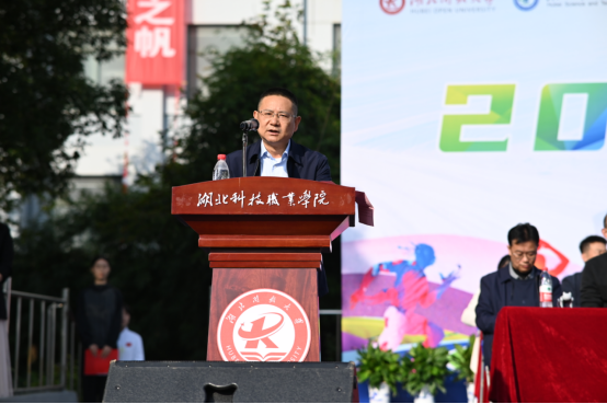 何平在开幕式上致辞,他表示,体育给我们带来的不仅仅是一种运动,更是一种精神,它赋予我们勇敢、果断、激情;它是一种力量,让我们更快、更高、更强;它是一种财富,带给我们品质、健康、快乐;它是一种艺术,让我们更加协调、优美。本次运动会的主题是“运动,让我们更快乐”,就是要让我们每一位老师学生都要树立“每天锻炼一小时,健康工作30年,幸福生活一辈子”的健康生活理念,争做人格健全、身体健壮、心理健康的新时代公民,愿我们每一位师生都能健康、快乐、全面、和谐地发展。