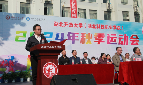 本网讯(通讯员 韩希锦/文 刘捷 李贺刚 大学生记者:蔡迪嘉恒 何梦欢 王容 徐恒垚 张舒凯 方靖 孙熔 武琪雯/图)金秋十月,微风不燥,阳光正好。10月23日至24日,我校2024年秋季运动会在关山校区举办。此次运动会的主题为:运动,让我们更快乐。党委书记钟毓宁,校长陈志祥,党委副书记何平,副校长宋移安、汤春来,纪委书记、监察专员丁华涛,党委常委李宜兵及各单位、各部门主要负责人出席运动会开幕式。