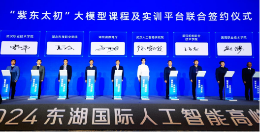 会上,夏学文作“人工智能产教融合共同体 赋能高素质技能人才培养”主题报告,详细介绍了我校联合湖北大学、科大讯飞等单位组建的湖北省人工智能产教融合共同体,以及共同体在推进高素质技能人才培养方面取得的显著成效。并代表我校与省教育厅、武汉人工智能研究院等单位共同签订了“紫东太初”大模型课程及实训平台联合协议,标志着我校在人工智能教育领域迈出了坚实的一步。