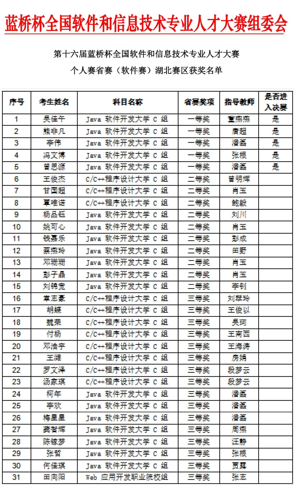 我校学子在“蓝桥杯”全国软件和信息技术专业人才大赛湖北赛区赛中斩获五个一等奖
