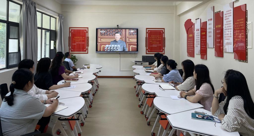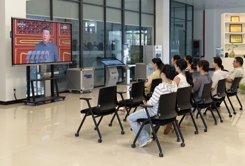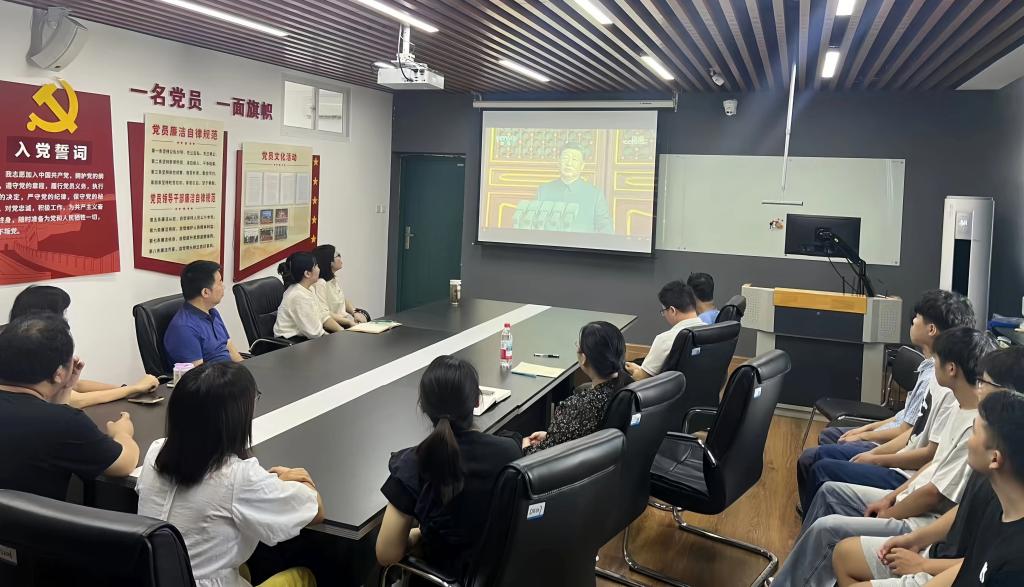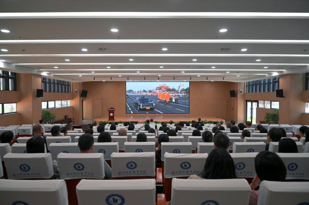 本网讯(通讯员:高苗苗/文 刘捷、高苗苗、大学生记者:方靖、孙蓉、张乃允、田向阳、各单位/图)9月3日,纪念中国人民抗日战争暨世界反法西斯战争胜利80周年大会在北京天安门广场隆重举行,以盛大阅兵仪式,同世界人民一道纪念这个伟大的日子,共同开创更加光明的未来。中共中央总书记、国家主席、中央军委主席习近平发表重要讲话并检阅受阅部队。我校师生热切关注大会盛况,通过“主会场+分会场”的形式收看,共同铭记历史,缅怀英烈。
