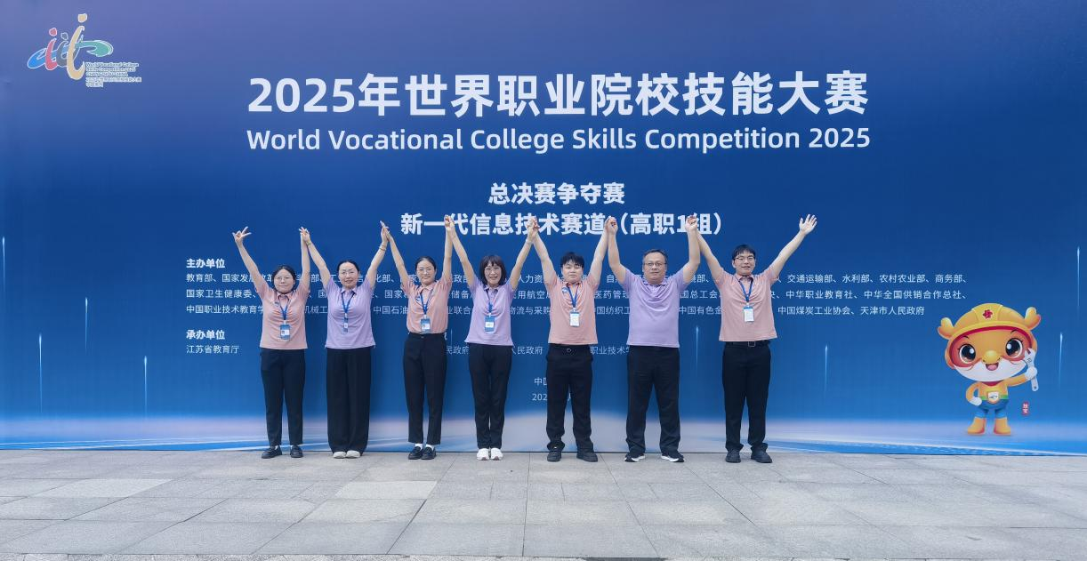 本网讯(通讯员:肖玉/文 王智超/图)9月7日至12日,2025年世界职业院校技能大赛新一代信息技术赛道高职组争夺赛在江苏常州举行,来自全国28个省(自治区、直辖市)的251支代表队、1000余名青年技能选手同台竞技,彰显综合技能。软件工程学院王智超、肖玉老师指导,软件技术专业蔡燕玲、梅智伟、潘金凤、龚智辉 4名同学组成的团队,经过激烈角逐,最后以小组第二的成绩获得银奖。