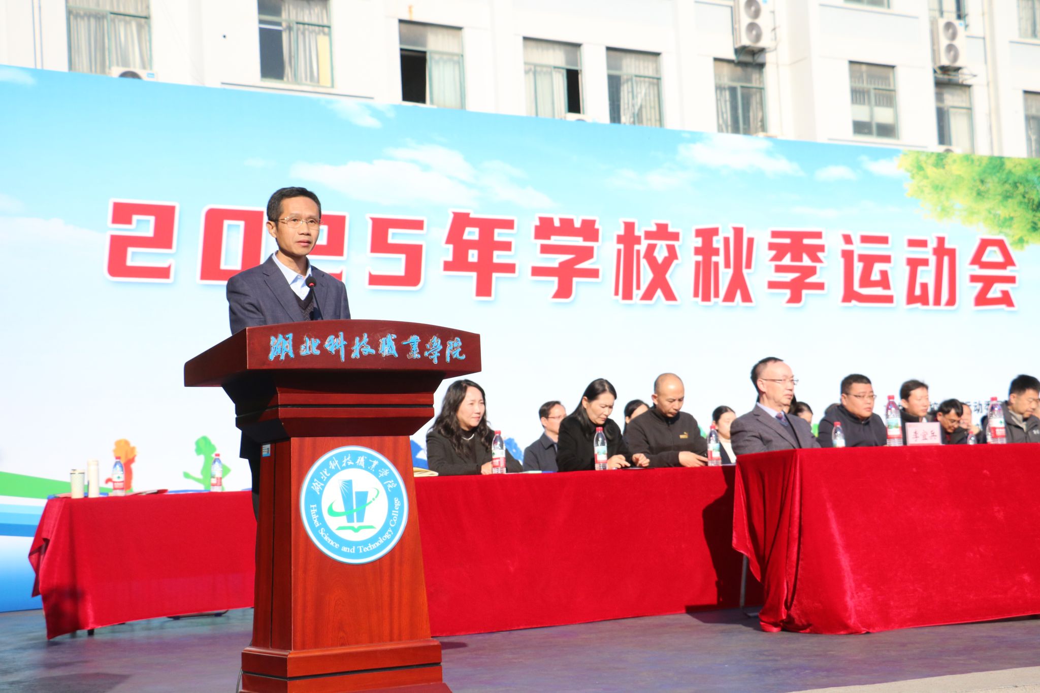 副校长周得力致闭幕辞。他指出,运动会既是强健体魄、磨砺意志的实践课堂,也是凝聚人心、彰显风采的精彩舞台。本届运动会是对学校体育工作和师生精神风貌的一次集中展示,更是落实“立德树人、全面发展”教育理念的生动实践。在两天的赛事中,同学们以昂扬的斗志挑战极限,以精湛的技艺诠释体育精神,展现了高超非凡的竞技水平,让“湖科精神”在绿茵场上熠熠生辉。他希望全体师生把赛场上的昂扬斗志、默契协作与奋进姿态,转化为日常学习与工作的持久底色。把赛场上的激情与豪迈,沉淀为追求卓越、勇于担当的前行力量,在人生的赛道上一往无前,在时代的洪流中奋楫争先,用奋斗书写个人成长的精彩,用实干谱写学校发展的华章。