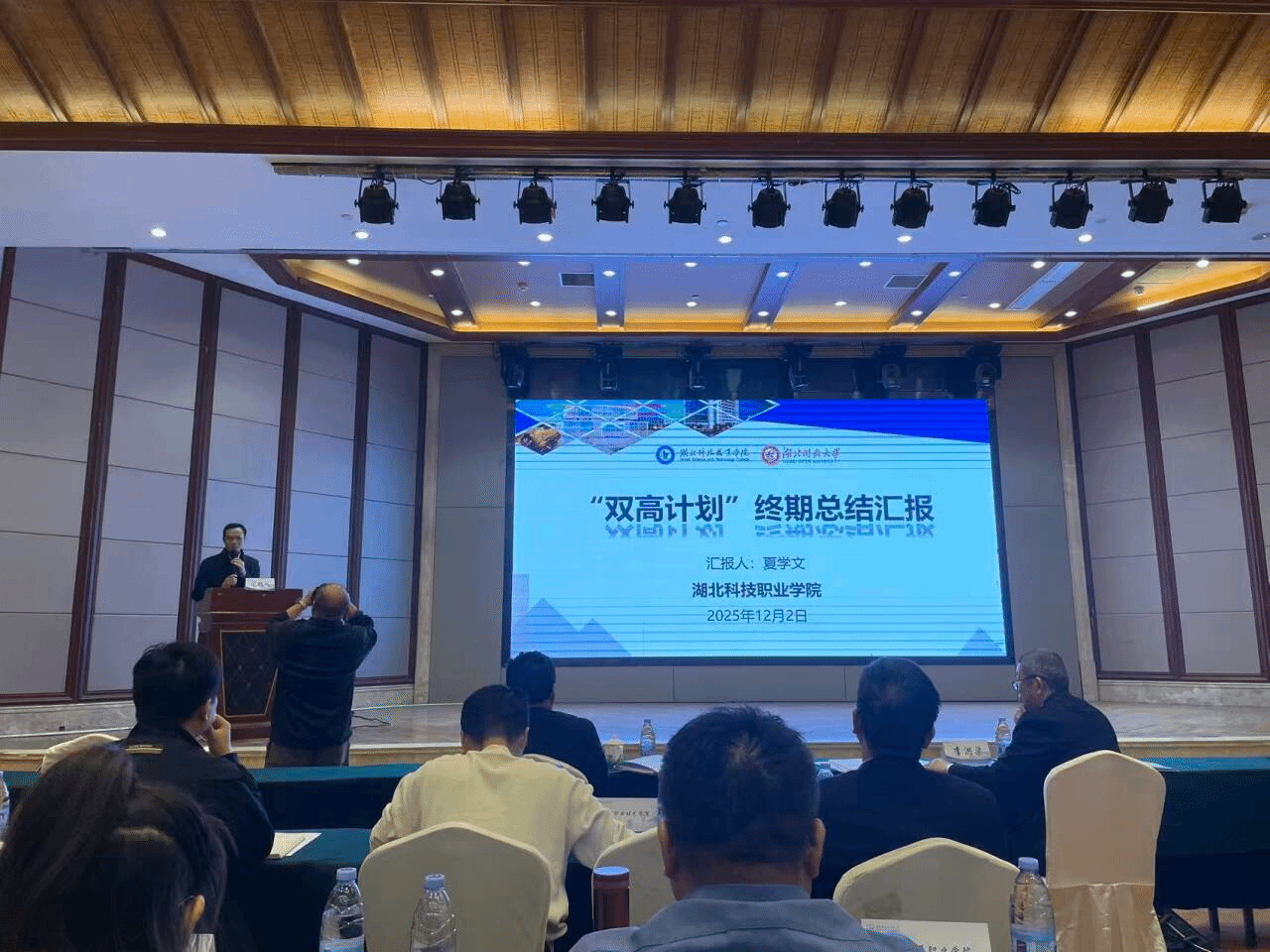 本网讯(通讯员 詹乐 文/图)12月2日,副校长夏学文及双高办相关工作人员参加省“双高计划”终期验收汇报会。此次终期验收既是对我校过去四年“双高”建设工作的全面总结与成果检阅,也是全省职业教育领域交流经验的重要平台。汇报会上,来自全省47所兄弟院校的代表齐聚一堂,集中展示建设成效、分享发展经验。
