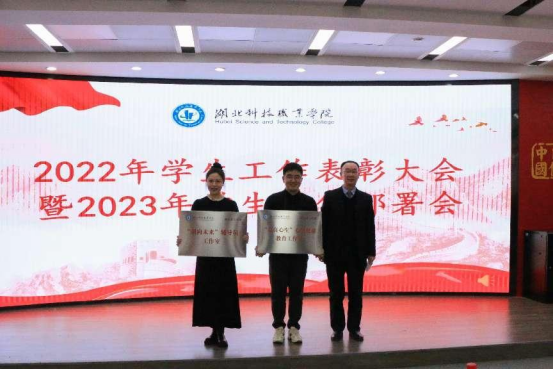 本网讯(通讯员 杨星星/文 孙彬 秦粤 汪澜/图)为全面贯彻落实党的二十大精神,以高质量学生工作助力学校高质量发展,营造“对标先进,比学赶超”干事创业良好氛围,2月20日下午,我校在思政大讲堂召开2022年度学生工作表彰大会暨新学生工作部署会。校党委常委李宜兵出席会议,学工部、宣传部、保卫部、职院教务处、马克思主义学院、后勤服务集团负责人,各学院党总支书记、全体辅导员,学工部、团委全体人员参会。