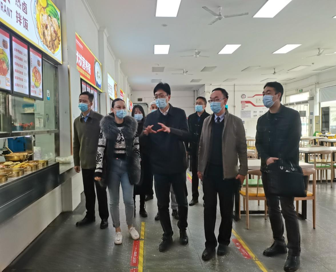 本网讯(通讯员 牛苏杭 文/图)3月27日上午,武汉市洪山区委常委、政府党组副书记、副区长张健带领区应急管理局、市场监督管理局、天然气公司、鲁广社区等相关单位来我校督导检查食品等安全管理工作。校党委常委李宜兵,后勤服务集团相关负责人陪同检查。