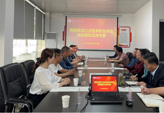 本网讯(通讯员 邱沙沙/文 王维 牛苏杭 赵菁/图)4月12日下午,江汉艺术职业学院党委委员、副院长邓绍汉和刘晖一行6人来校考察交流。校党委常委张化斌热情接待了邓绍汉和刘晖一行,党办校办、学工部、基建处、后勤服务集团等相关部门负责人参加了交流活动。