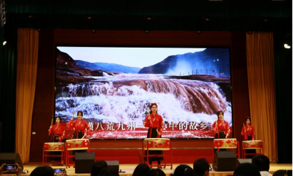 弦音振动,鼓乐吹笙,最后由大学生艺术团和音乐社共同演唱的歌曲《飞跃》呼唤师生不忘初心、砥砺前行,爱国荣校,共创辉煌。晚会在歌声中画上了圆满的句号。