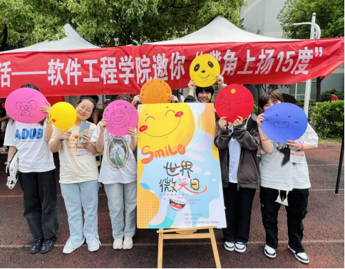 本网讯(通讯员 邹世康/文 徐蕾 高苗苗/图)“今天你微笑了吗?”5月8日“世界微笑日”当天,软件工程学院邀请师生一起“嘴角上扬15度”,让微笑传递幸福、传递感恩、传递关爱。