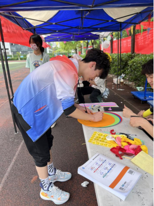 尽管天气闷热依然阻止不了同学们争做“微笑达人”的热情。情绪盲盒交换过后,大家现场手绘微笑脸谱、制作微笑标志,描绘出自己心里的“最美笑颜”。一笔一划,是用心的形象勾勒;情态飘逸,是心灵的生动表达。一提、一抹、一勾、一点,一张张笑脸灿烂纷呈。“一直知道微笑也是一种语言,却不曾想手绘的微笑原来这么美”,参与者迫不及待地拿着刚刚完成的微笑脸谱与身边同学分享。