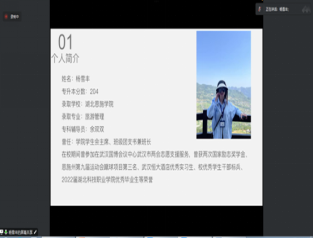 会上,2015级邮轮专业优秀毕业生周畅结合自己曾在皇家加勒比“海洋自由”号邮轮餐饮部的工作经历,分享了邮轮餐饮部的工作内容与岗位职责、面试的方法与技巧等,鼓励同学们一定要学好、用好英语,注重积累工作经验。2016级邮轮专业彭啸林现任职于招商伊顿号邮轮,毕业至今他一直在邮轮行业工作,彭啸林于2018年在路易斯邮轮“奥林匹亚”号工作,航线是地中海沿岸,随船去过西班牙巴塞罗那,法国马赛,意大利巴里、罗马,希腊雅典,罗德岛,圣托里尼;2019年在丽星邮轮“双子星”号工作,随船去过日本那霸、冲绳;2021年5月至今他在中国市场首艘悬挂五星红旗行驶国内沿海航线的“招商伊敦”号邮轮工作。彭啸林因工作原因无法参加会议,他提前为同学们录制了视频,分享了大量工作心得。2022年专升本成功上岸的杨雪丰,现就读湖北恩施学院,她从院校选择和备考复习等方面分享了她的学习经验,鼓励大家要相信自己、树立目标、坚持不懈。2020级邮轮专业的两名优秀实习生分享了他们6个月的实习心得。阮启胜在武汉扬子江有限公司“总统八号”游轮上实习,通过拍摄“总统八号”游轮视频,直观地讲解游轮的格局分布;张东海在武汉光谷皇冠假日酒店实习,他分享了在酒店实习需要注意的种种细节。在互动答疑环节,同学们积极参与,学长学姐们耐心解答。