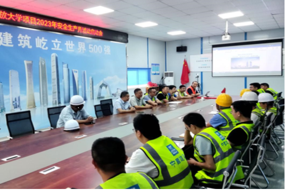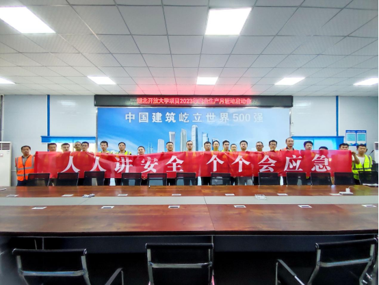 本网讯(通讯员 李博文 文/图)为深入贯彻党的二十大精神和习近平总书记关于安全生产的重要论述,响应2023年湖北省安全生产月活动安排,营造“人人讲安全 个个会应急”安全氛围,强化红线意识,普及安全知识,“两栋楼”建设项目正式启动2023年“安全生产月”活动。5月30日,“两栋楼”建设项目“安全生产月”启动仪式在项目部会议室举行,各参建单位参加。