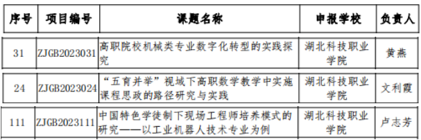 我校获批2023年度湖北省职业技术教育学会科学研究课题立项名单