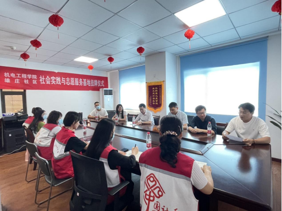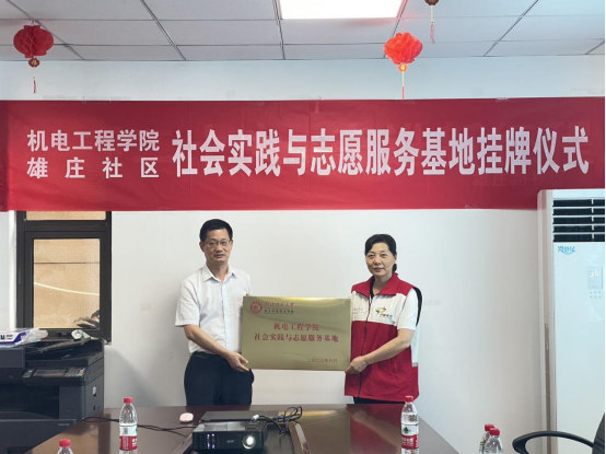 本网讯(通讯员 杨涵宇/文 周良/图)为提升人才培养质量,培养大学生社会实践技能,6月下旬,机电工程学院社会实践与志愿服务基地挂牌仪式在东湖高新区雄庄社区举行。学院党总支书记赵清泉、副院长汪超、社区书记熊金莲、主任王群秀等社区工作人员代表和学院全体学工人员参加仪式。