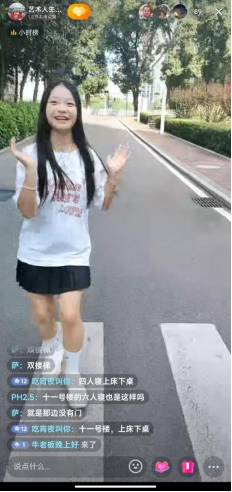 “各位小萌新们,这是传媒艺术学院图书馆,以后各位同学在没课的时候,可以在此看看书”;“这里是食堂、教学楼、寝室......”,在各位学长学姐们地带领下,依次打卡了传媒艺术学院图书馆、教学楼、食堂、菜鸟驿站,男女新生宿舍、实训室等多个与新生学习和生活息息相关的场所。在直播过程中,学长学姐们热情地向新生介绍校园环境、文化生活、食宿条件及报道注意事项。学长学姐还对新生们提出的疑惑进行热情地解答,新生们纷纷表达了对大学生活的美好向往和期待。