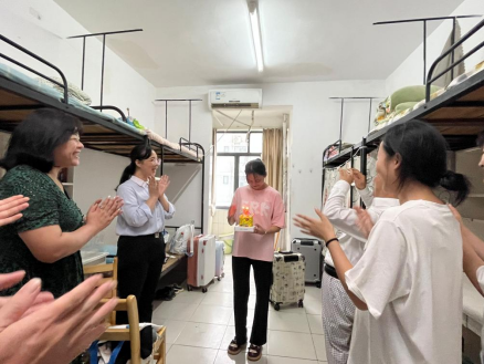 同时,学院为开学报到当天过生日的新生在宿舍举办一场暖心的生日会。2023级旅游管理专业的小陶是今年学院旅游类技能高考录取最高分的学生,恰巧入学当天是她18岁的生日,学院院长苏枫、总支书记吕恒喜、副院长秦琴为该生送上生日蛋糕和礼物,希望通过这种方式让新生感受到学校这个大家庭的温暖。