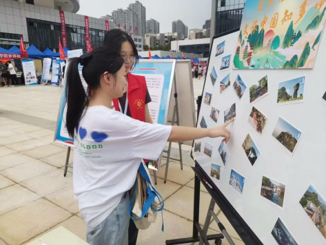 为提前让新生感受到所学专业的魅力,迎新现场打造“数字文旅+专业”特色活动。新生在中国地图上通过抽题打卡的形式标识著名旅游景点,提前感受数字文旅带来的文化美丽和大美中国;开展“云”游湖科现场直播活动,让在路上的同学和家长提前熟悉流程与热情。学院把迎新活动与专业技能相结合,学生通过展示所学茶艺技能,为新生家长端上一杯热茶,展示调酒技能为新生特调“工管新生饮品”,为新生提供一杯果茶。