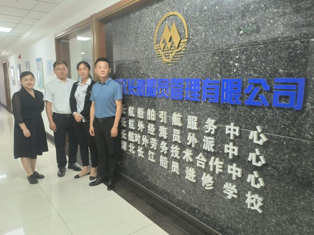 本网讯(通讯员 闫秦勤 文/图)9月13日,工商管理学院院长苏枫带领国际邮轮乘务管理专业负责人赴武汉长航船员管理有限公司开展访企拓岗调研,了解企业用人需求,洽谈校企合作事宜。武汉长航船员管理有限公司书记、总经理李臻,副总经理蔡宏伟,海员外派船务中心总经理杨志,海员外派船务中心总船长石伟参加了本次调研活动。