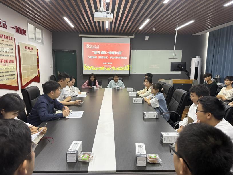 本网讯(通讯员苏恒瑞李婧雯/文向珅玓/图)为进一步加强与少数民族学生、偏远地区学生的沟通与交流,营造民族一家亲的良好育人氛围,帮助2023级少数民族、偏远地区新生更好地适应大学生活,推动各民族、各地区的交流融合,传递学院温暖。9月27日,电信工程学院召开“爱在湖科·情暖校园”少数民族(偏远地区)学生座谈会。学院党政领导班子、三办负责人、新生辅导员以及来自新疆、贵州、云南、广西等地区的20多名少数民族(偏远地区)学生参与了本次座谈会,会议由党总支书记谢永平主持。