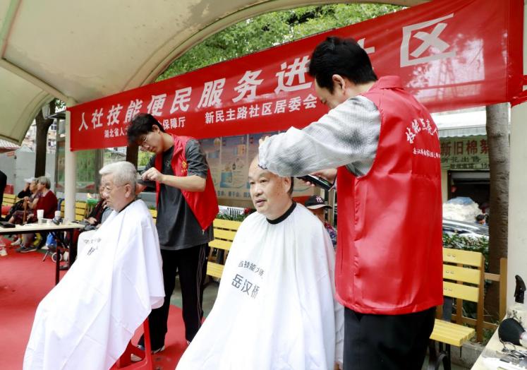 本网讯(通讯员叶方兴/文张启迪/图)9月26日,我校传媒艺术学院2021级人物形象设计专业姜凌霄、2022级人物形象设计专业程亚林同学参加湖北省人社厅在中南路街新民主路社区和星星社区开展的“人社惠民政策进万家”“人社技能便民服务进社区”志愿服务活动。