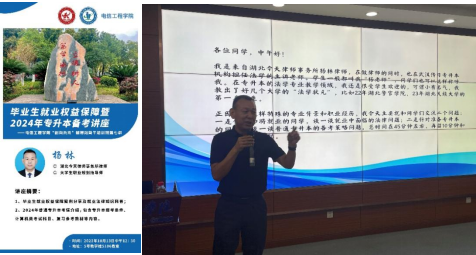 本网讯(通讯员 刘洵 向珅玓 文/图)为持续优化“品质就业”战略,落实毕业生就业工作责任,实现2024届毕业生更高质量更加充分就业,结合现阶段毕业生顶岗实习工作及专升本报考需求,10月13日中午,电信工程学院“创向未来”辅导员工作室举办学生骨干培训班第七讲“积极维护就业权益走好职业发展之路”。讲座特邀“湖北今天律师事务所”杨林律师,为学院2024届毕业生科普就业权益保障知识以及介绍2024年湖北省普通专升本考试情况。