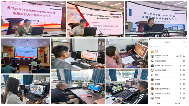 本网讯(通讯员 胡娟娟 文/图)为落实立德树人根本任务,推进湖北开放大学体系思想政治理论课高质量发展,提高思想政治理论课教学团队整体水平,10月18日,学校召开湖北开放大学体系思政课实践成果表彰大会暨师资培训会。全省体系所有专兼职思政课教师通过线上线下两个渠道参加培训,马克思主义学院副院长李映主持会议。
