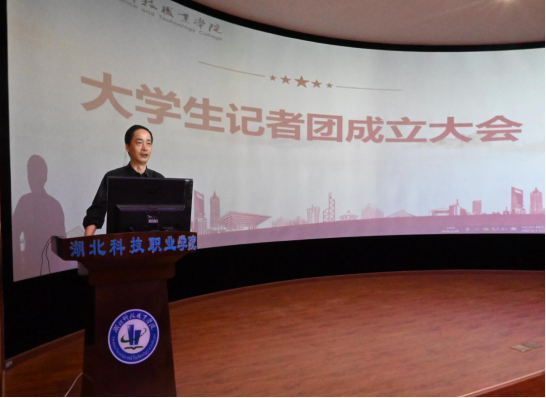 吴国学作总结讲话,他对大学生记者团的成立表示祝贺,对注入的新鲜力量寄予厚望,希望大家能通过工作平台充分展示自己能力和素养,用自己的文字和光影弘扬时代主旋律,为活跃校园文化添砖加瓦,也为自己的成长积蓄力量。