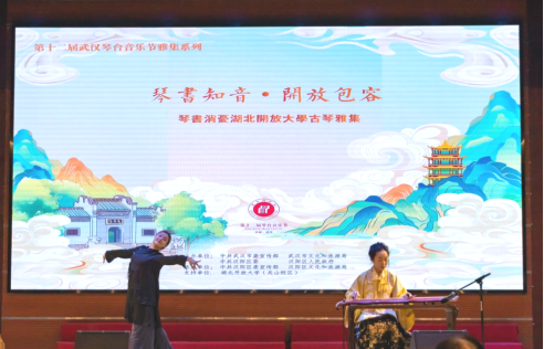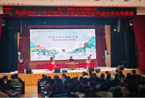 本网讯(通讯员 周良 俞运龙/文 黄桂锋 大学生记者团:余烨 曹礼成/图)为引导高雅艺术、非物质文化、民族民间优秀文化走近师生,11月11日,以“琴书知音·开放包容”为主题的第十二届琴台音乐节古琴系列活动之“琴书消忧”湖北开放大学专场雅集在我校关山校区举行。本次活动由武汉市委宣传部、武汉市文旅局、中共汉阳区委、汉阳区政府主办,汉阳区委宣传部、汉阳区文旅局承办,学校学工部、团委、机电工程学院、马克思主义学院联合举办。来自各职能部门、学院的300余名师生共同欣赏了这场音乐盛宴。