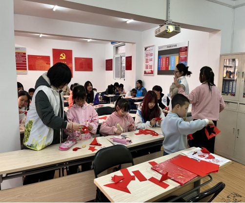 在“四点半学校 美育课堂”中,志愿者为小朋友讲述了荆楚非遗剪纸的起源、发展和传统习俗。志愿者通过现场演示的方式讲述了剪纸的要领和技法,从如何选稿到如何下刀,从轮廓的剪法到细节处理,都一一示范。小朋友们认真听完便开始创作,有的裁、有的画、有的折、有的剪,全神贯注,伴随着“咔嚓”声和欢笑声,一张张红纸在大家的指尖上下摆动,不一会儿,一个个形态各异的作品映入眼帘。一幅幅剪纸作品,一张张开心的笑容,组成了最美的画面。