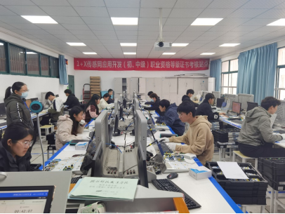 本网讯(通讯员 段梦云/文 鲍毅/图)11月25日上午,“1+X”传感网应用开发(中级)职业技能等级证书考试在我校举行,软件工程学院物联网应用技术专业的学生参加了本次考核。我校2020年首次参加“1+X”传感网应用开发职业技能等级证书考试,并设为考核站点,2020-2022年连续三年考证通过率达100%,今年再次圆满完成11月份的认证考试工作。